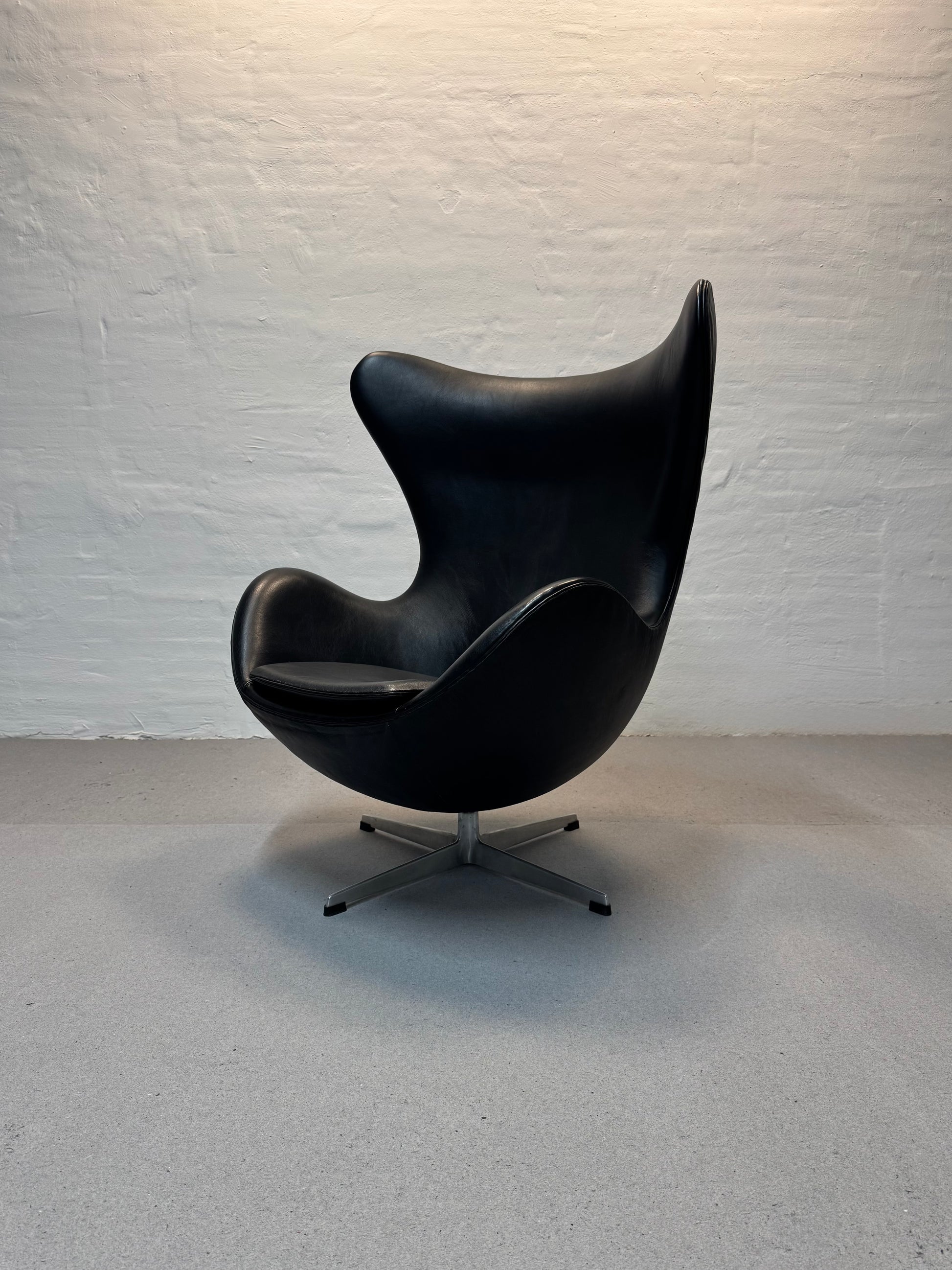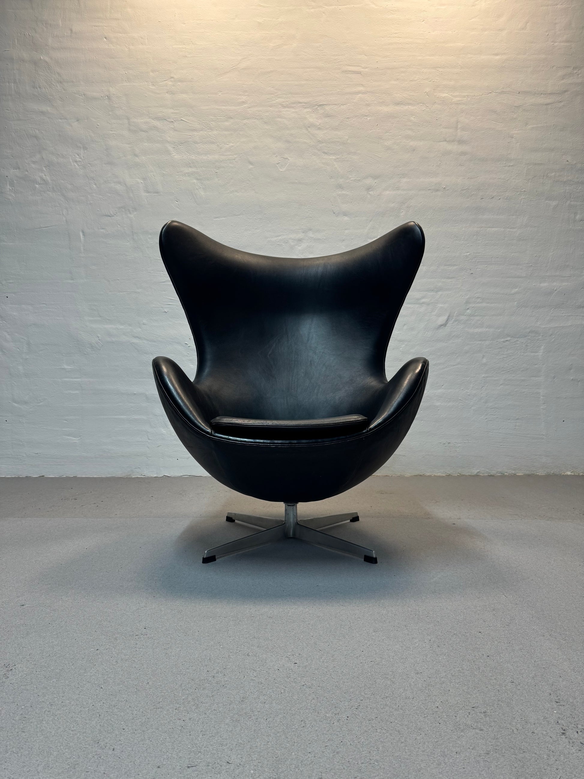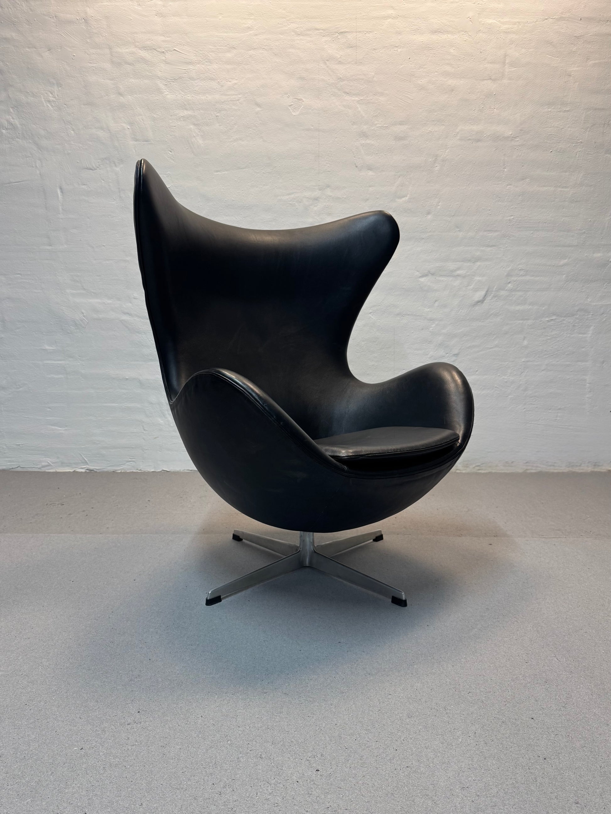 Super flot Ægget stol, fuldpolstret i sort læder.