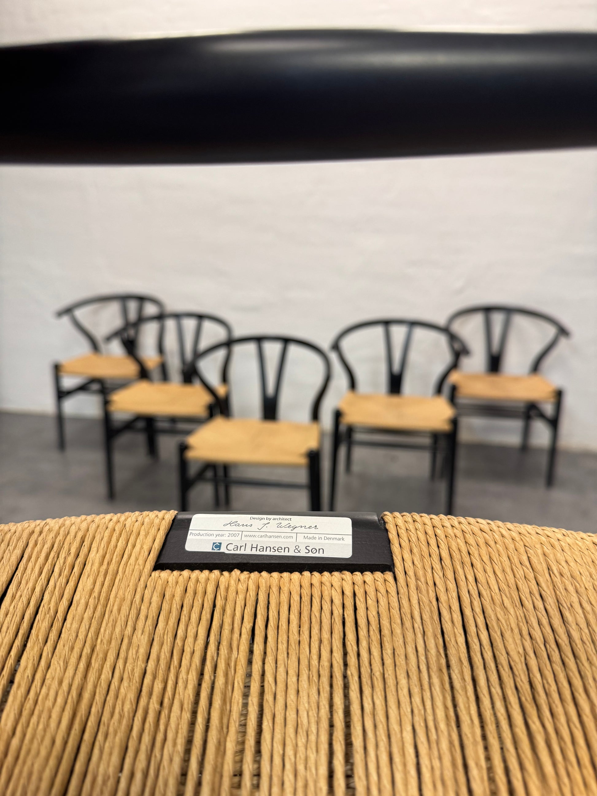 Velkendte og super flotte Y-stole, stel af sort bøgetræ og sæde af papirflet.