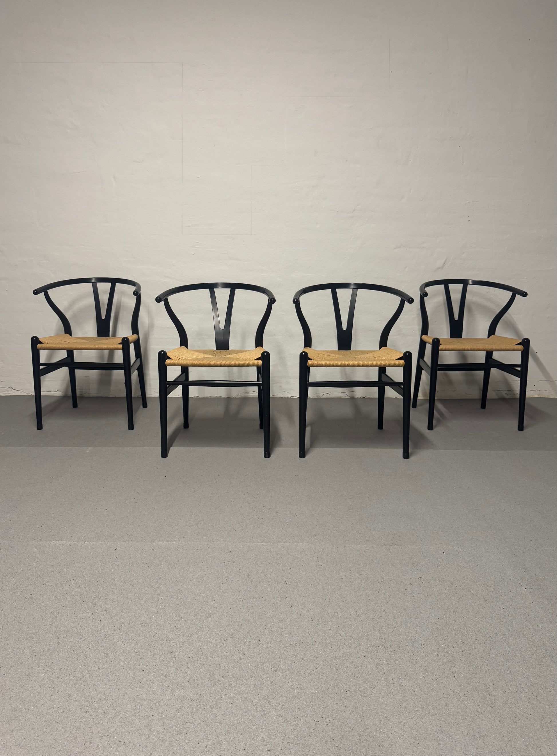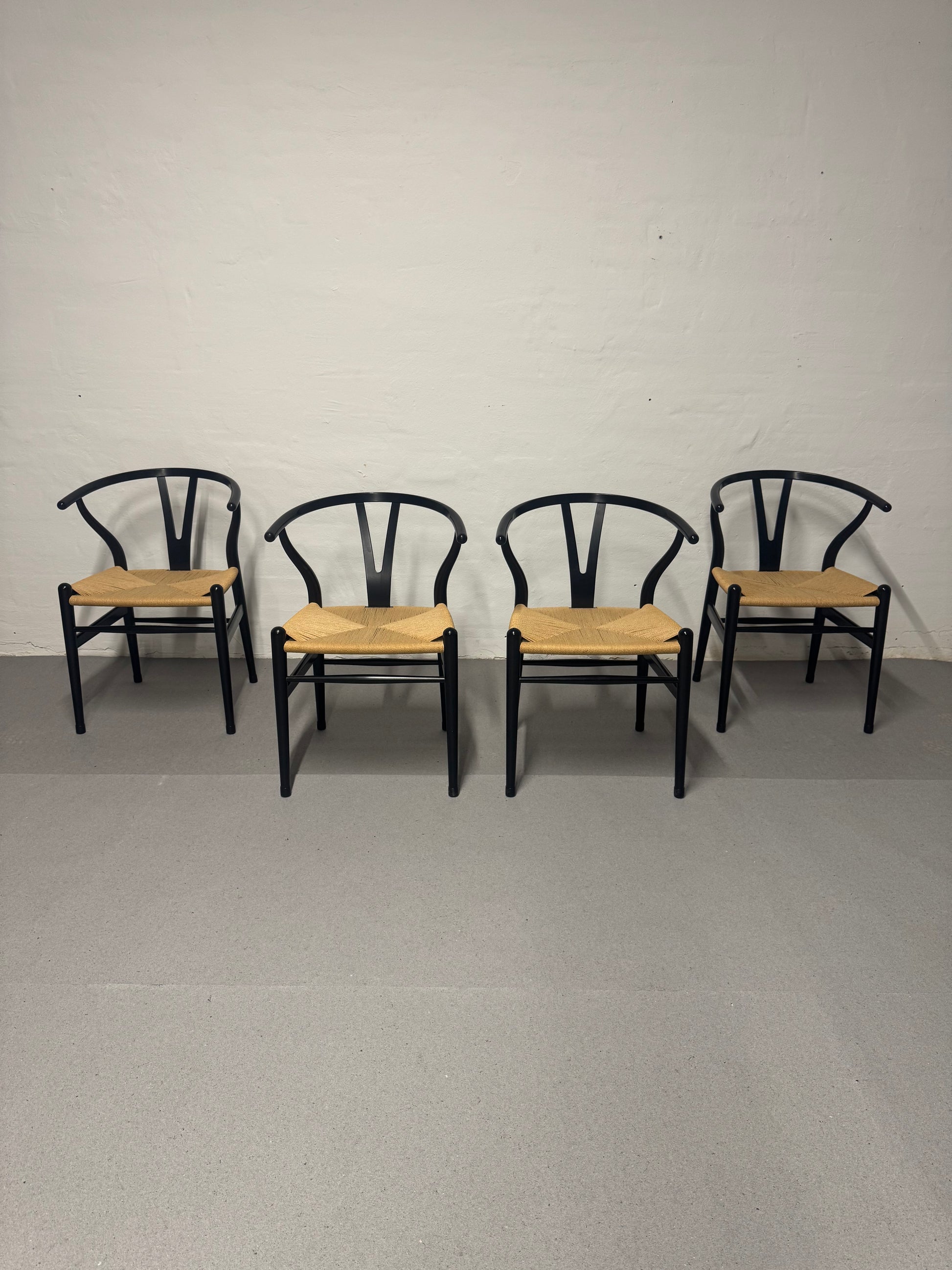 Velkendte og super flotte Y-stole, sæde af papirflet, stel af sort bøgetræ.