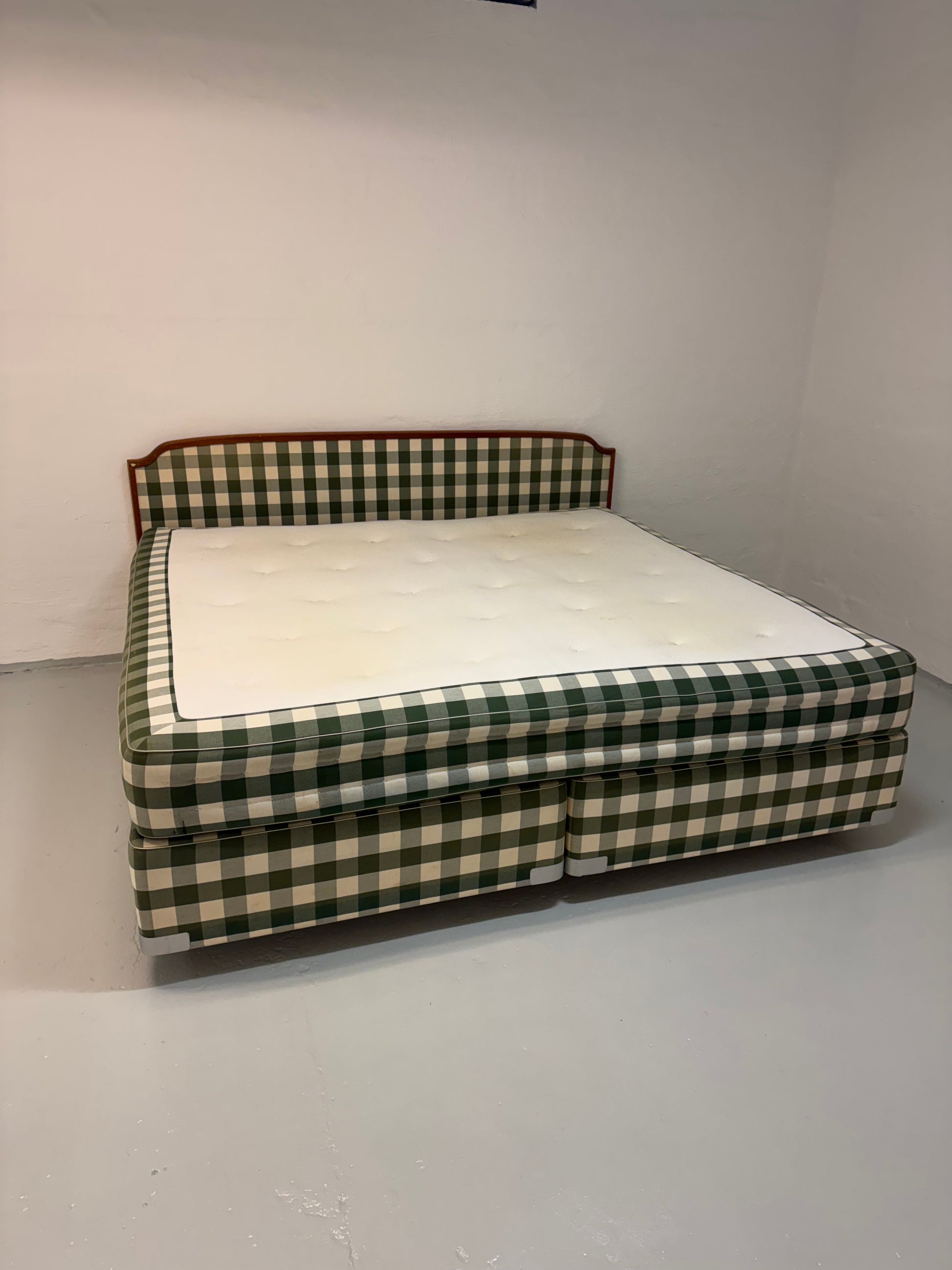 Meget eksklusiv og sjælden dobbeltseng fra Hästens. Denne 2000T med gavl er en unik specialproduktion, hvor der kun er fremstillet 2 eksemplarer på verdensplan. Sengen har medium fasthed og leveres med BJ topmadras, som giver en komfortabel og velafbalanceret liggeoplevelse. Den grønne/hvide farvekombination er både sjælden og elegant og giver sengen et helt unikt udtryk. Årgang 2011 – original kvittering medfølger.
