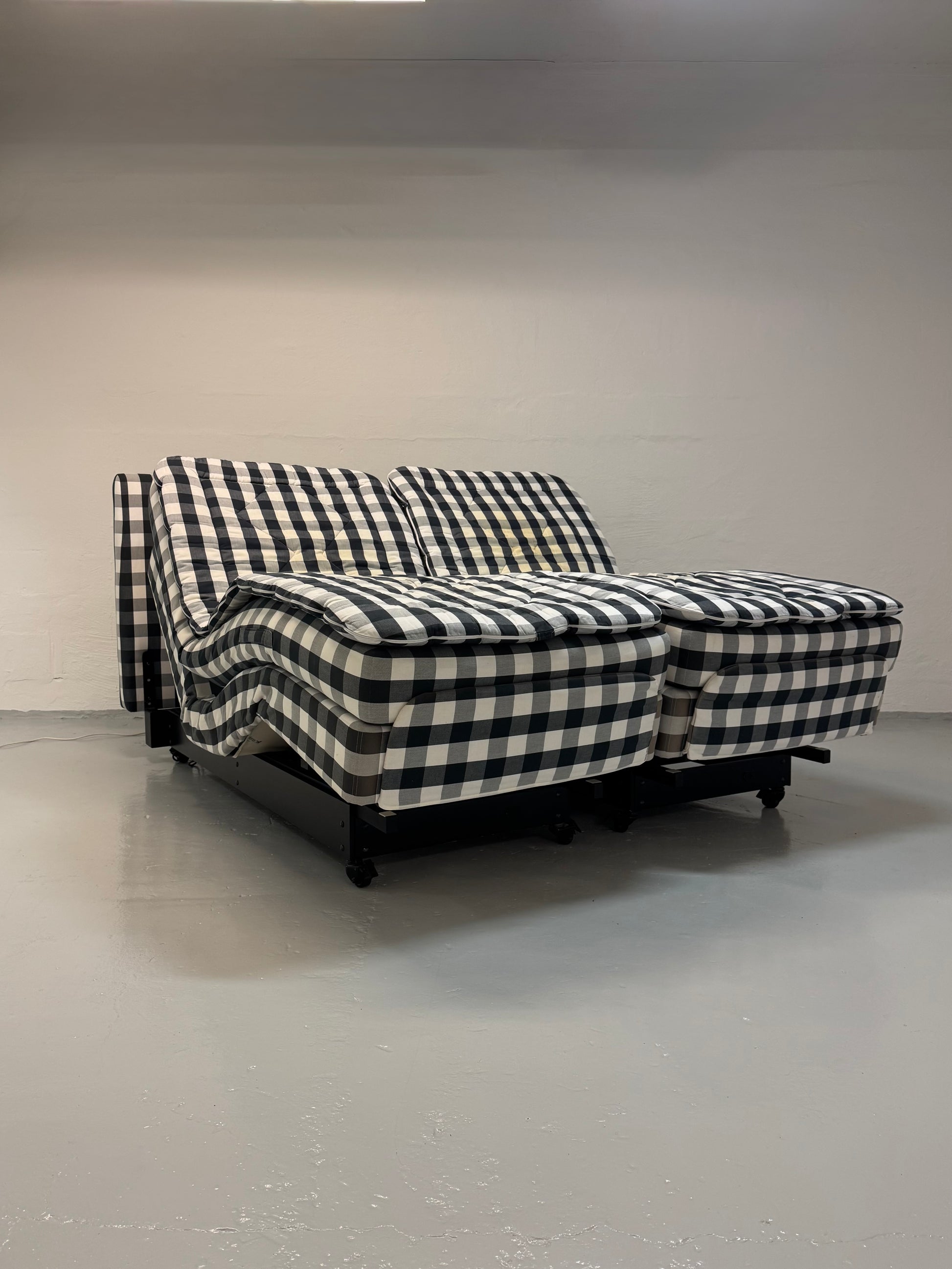 Eksklusiv dobbelt elevationsseng fra Hästens i absolut topklasse. Adjustable-modellen med gavl og indbygget massagefunktion kombinerer høj komfort, ergonomi og fleksibilitet. Sengen har medium fasthed og leveres med topmadras. Elevation i begge sider samt massagefunktion giver optimal aflastning og individuel tilpasning. Den sjældne sort/hvide farvekombination giver et eksklusivt og moderne udtryk.