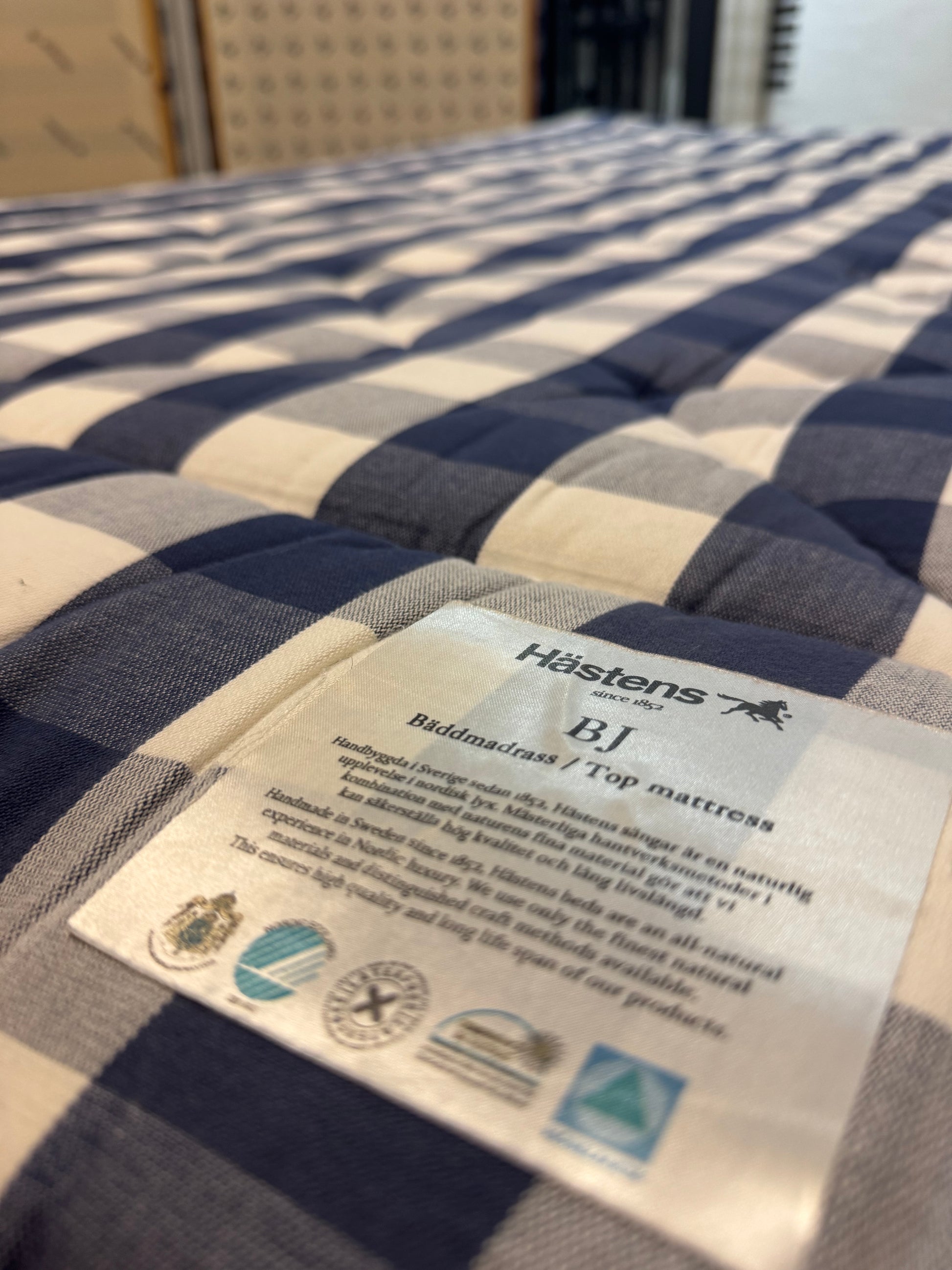 Eksklusiv dobbeltseng fra Hästens i høj kvalitet og klassisk design. Marquis-modellen er kendt for sin komfortable opbygning, gode støtte og lange holdbarhed. Sengen har medium/medium fasthed og leveres med BJ-topmadras, som giver en behagelig og afbalanceret liggekomfort. Den blå/hvide farvekombination giver et tidløst og elegant udtryk, som passer ind i de fleste soveværelser.