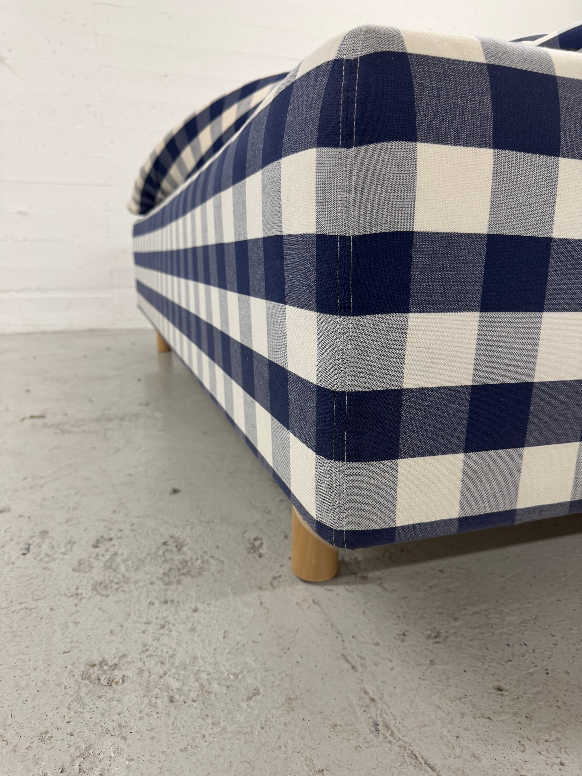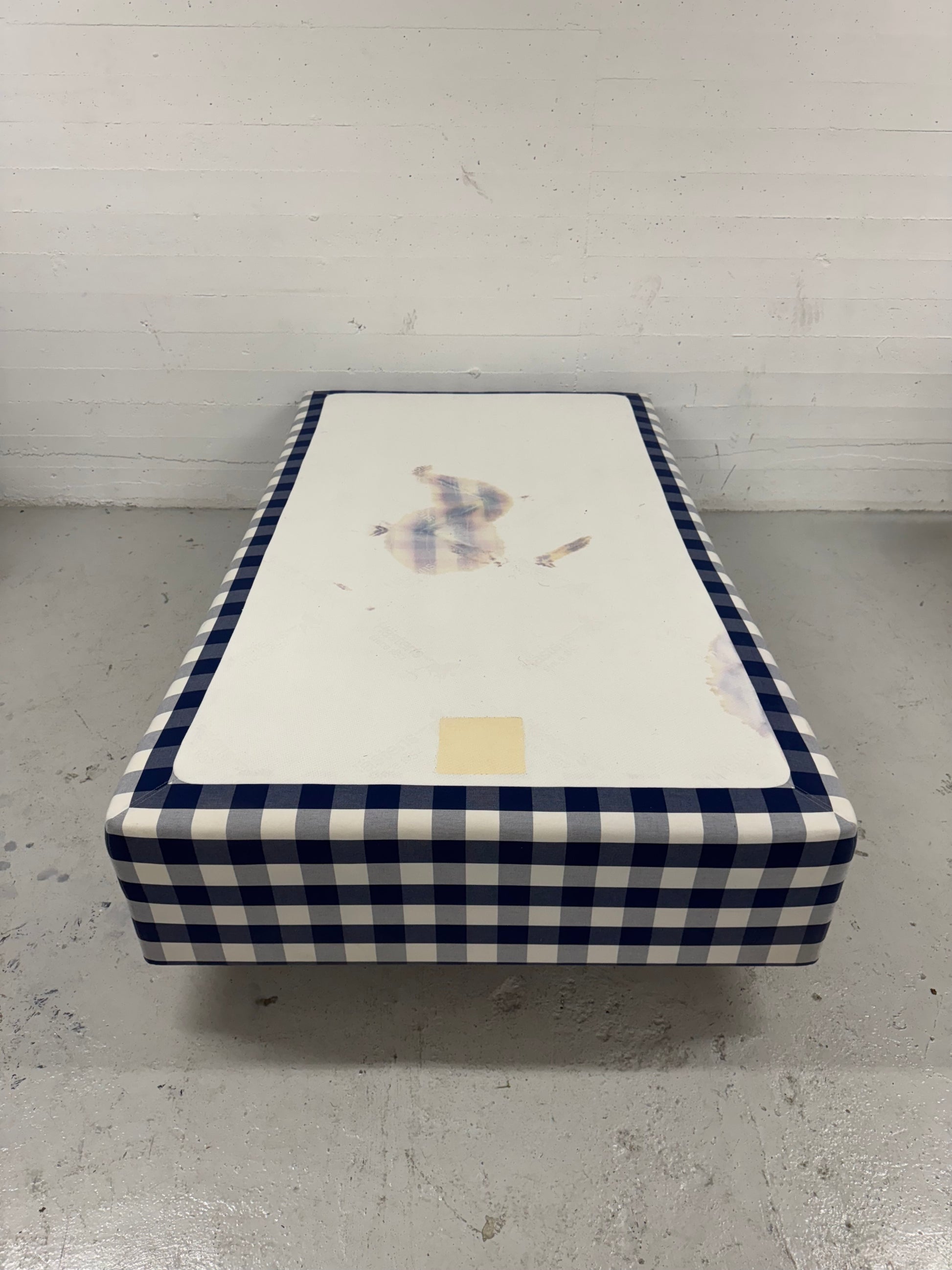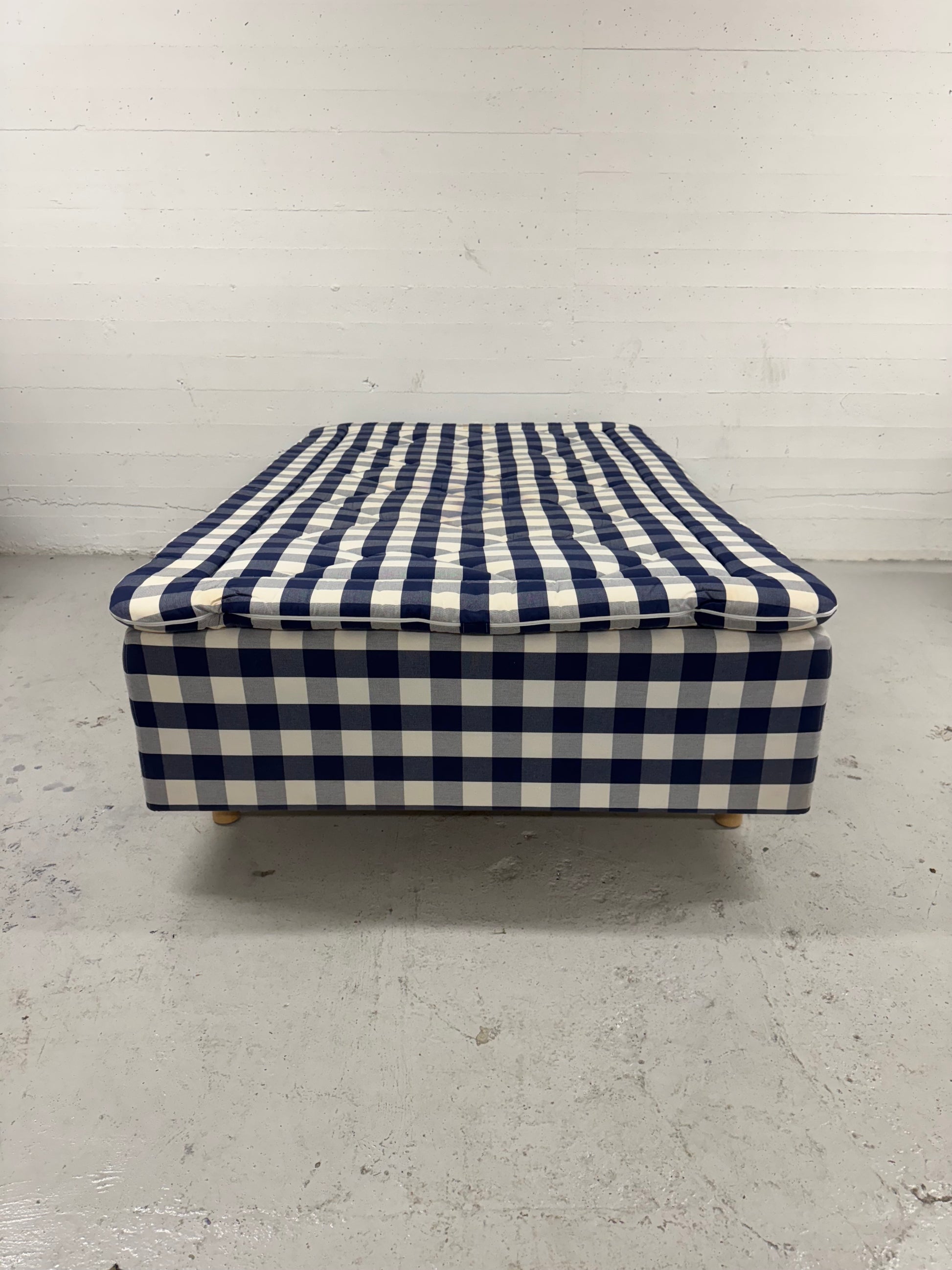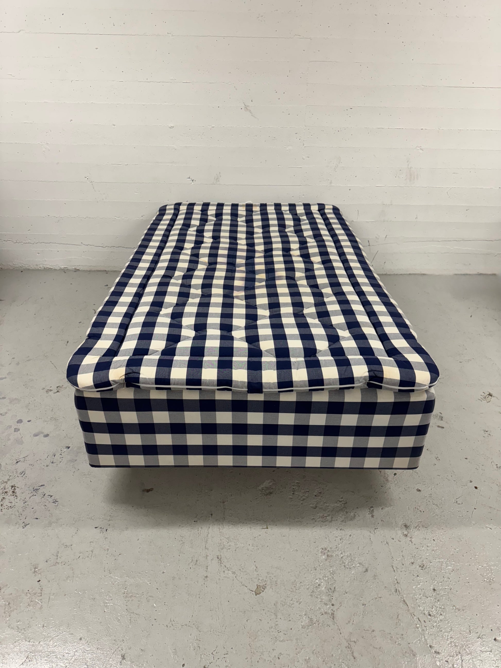 Eksklusiv Hästens ‘superia’ halvanden mands seng/enkeltseng i topkvalitet, blå/hvid ternet stof.