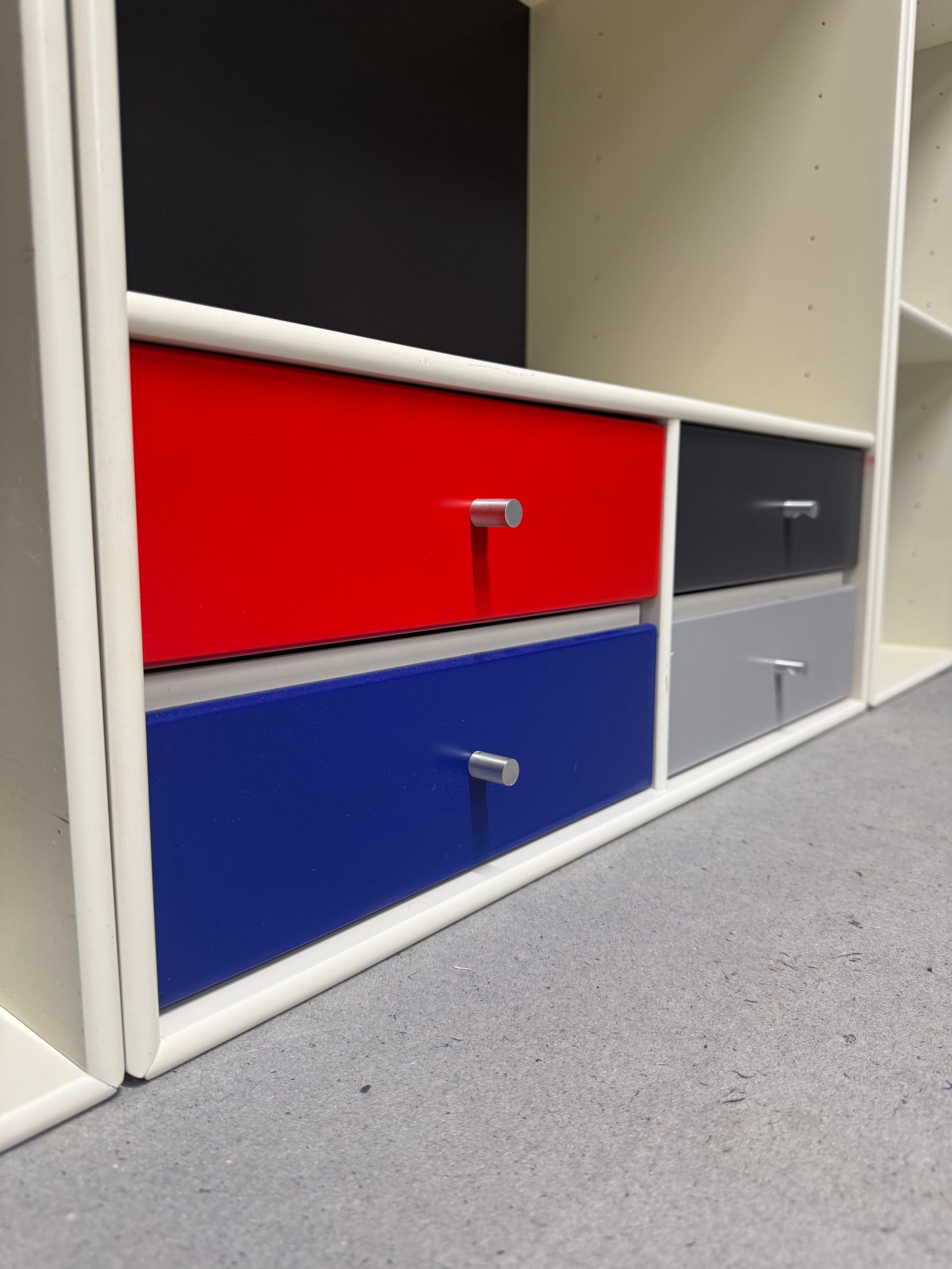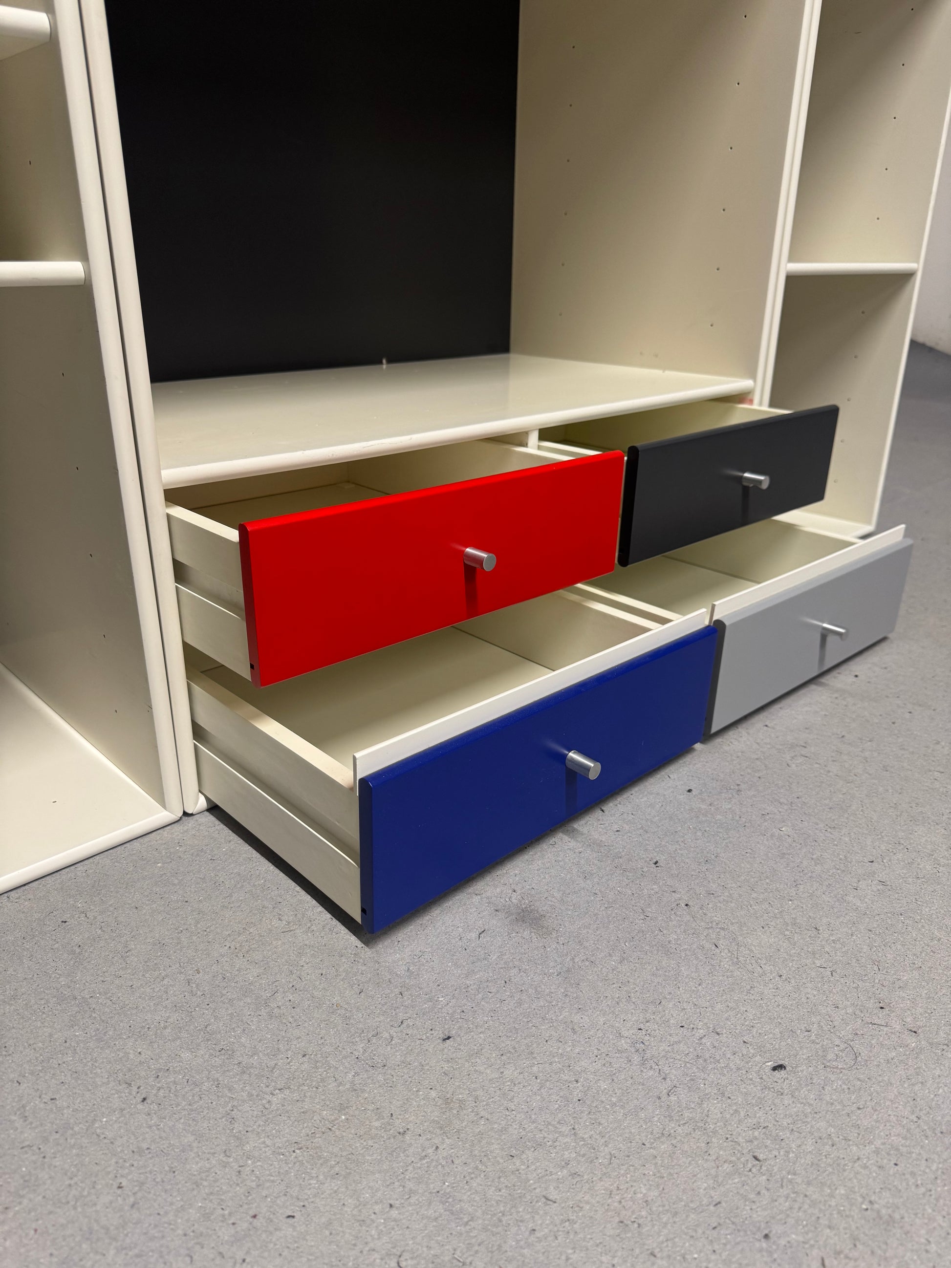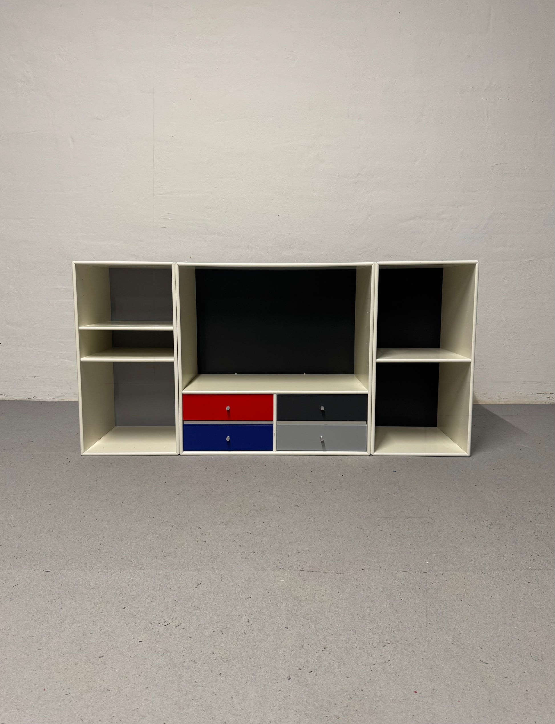 Hvide Montana moduler, super flot og elegant udtryk -med hylder som kan rykkes rundt alt efter behov og skuffer i flotte farver. Ophæng medfølger.